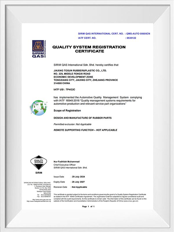 Dalam industri produk getah,     Profil Pepejal Extrusions Getah    telah menjadi komponen yang sangat diperlukan dalam banyak bidang perindustrian dengan sifat fizikal yang unik dan kawasan aplikasi yang luas. Sebagai pemimpin dalam bidang ini, Jiaxing Tosun Rubber & Plastic Co., Ltd. menyediakan profil pepejal yang berkualiti tinggi kepada pelanggan global dengan kapasiti pengeluaran yang kuat dan sistem kawalan kualiti yang ketat. Jadi, bagaimanakah Jiaxing Tosun memastikan kualiti produk dan memenuhi keperluan pelanggan yang pelbagai?